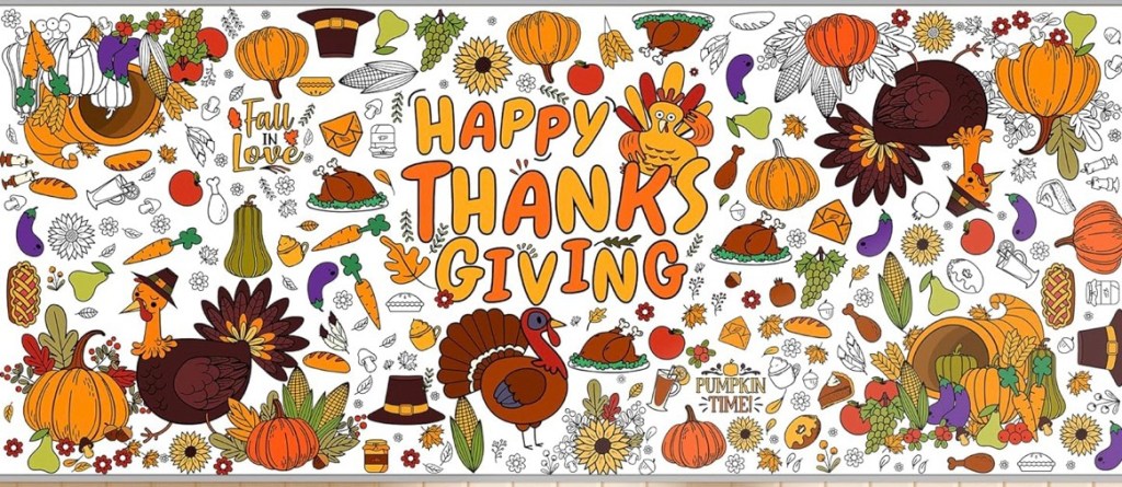 2. This Thanksgiving Giant Coloring Poster can also serve as a tablecloth. Get the kids involved in decorating and setting the (kids’) table this year. This activity is sure to keep the kiddos busy while expanding their Thanksgiving vocabulary with words like “cornucopia” and “Pilgrim hat”. Don’t forget to grab a set of Amazon Basics Broad Line Washable Markers as well so they have plenty of colors to choose from.